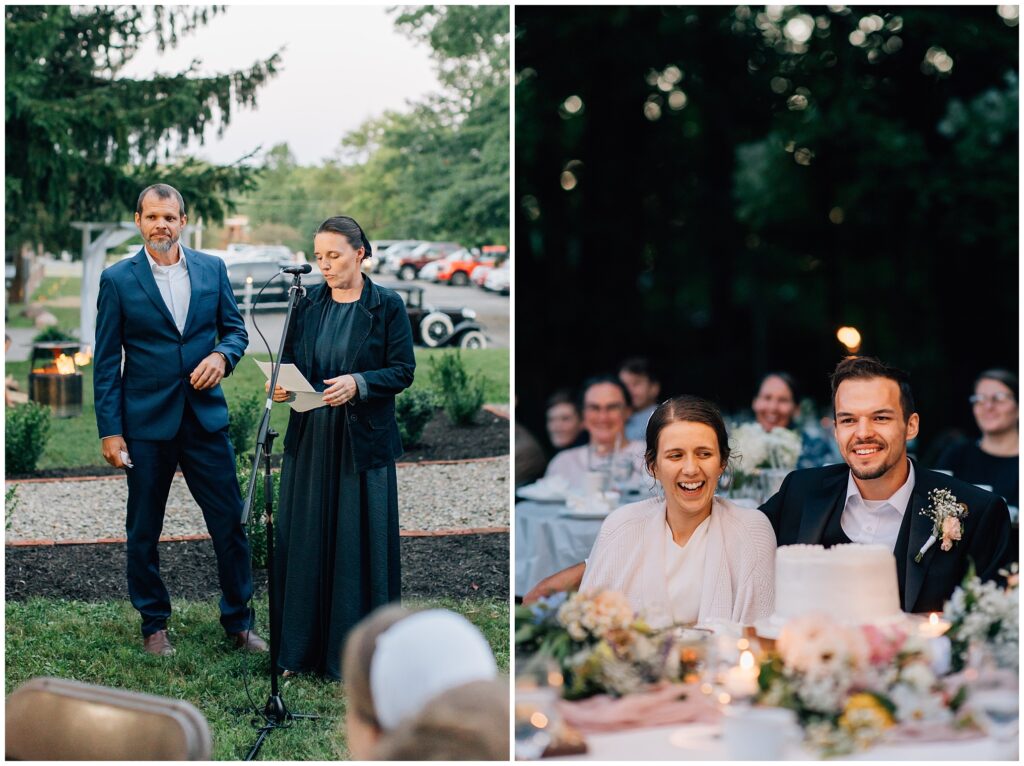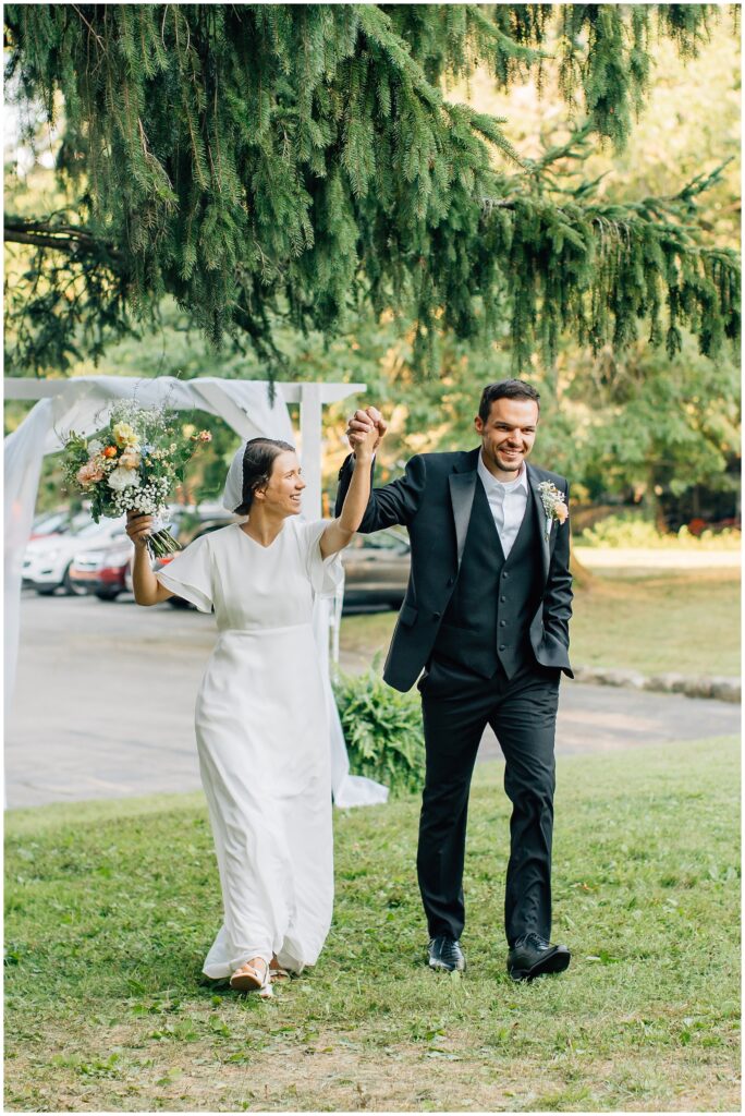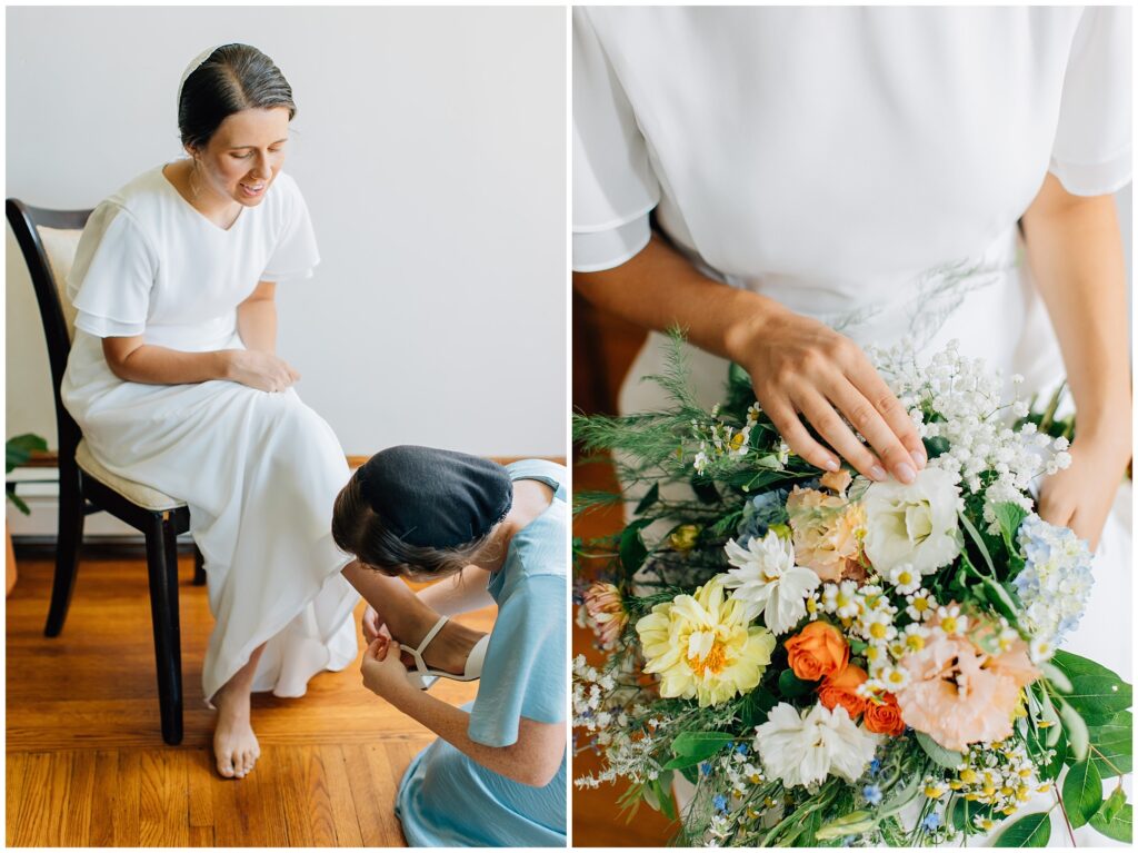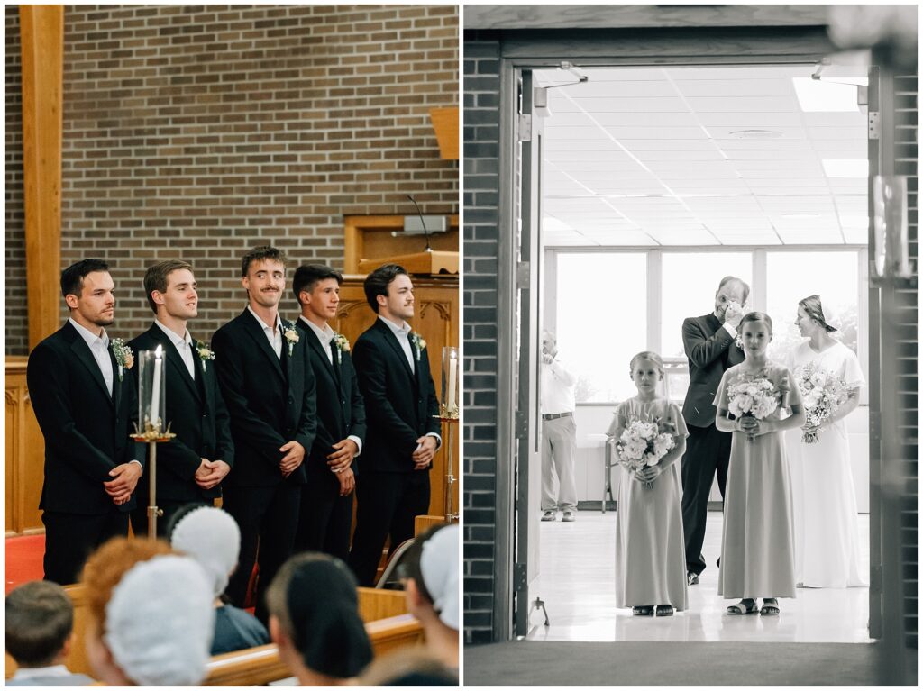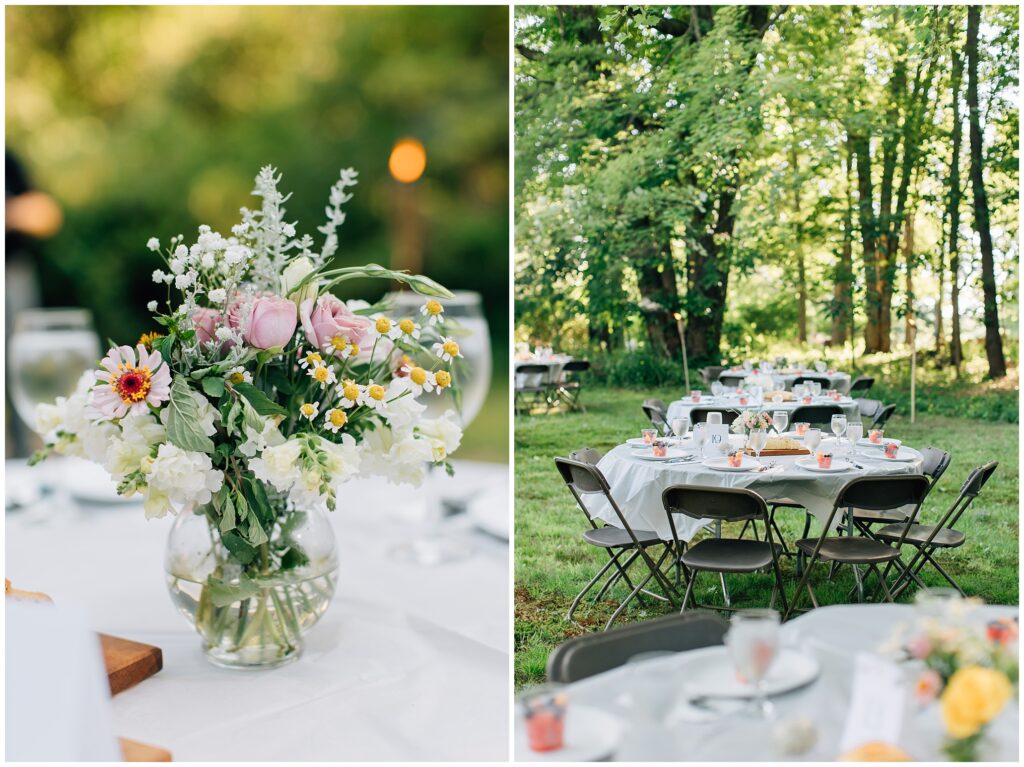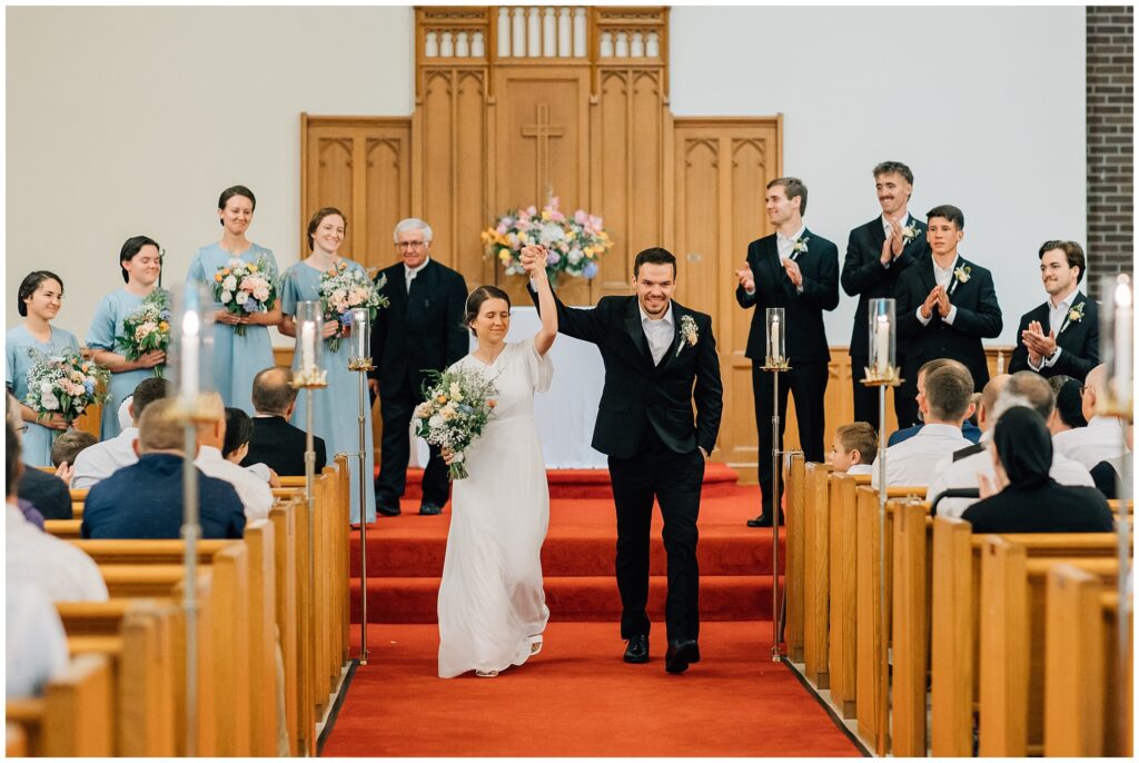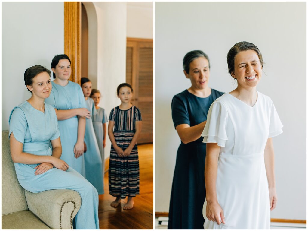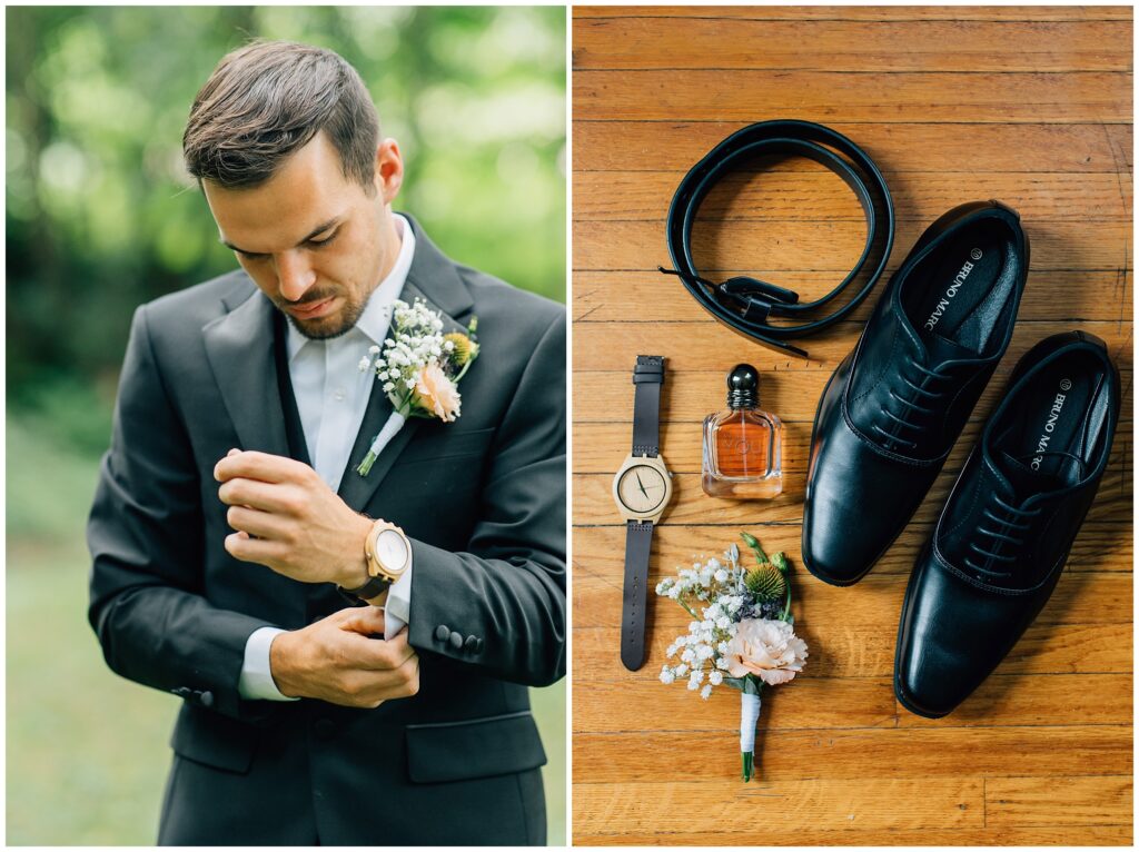 The bridal party had brunch together at the bride’s home and then she and her girls got ready for the day there. Harrison and Angeline shared a sweet first look in a clearing in the woods behind her house, then we went to the local college campus for the rest of the photos. They were so relaxed and happy and it was just a fun day all around!Â