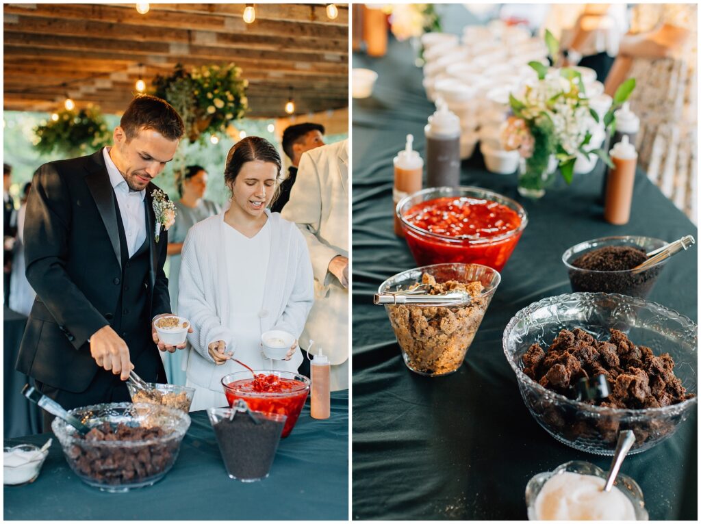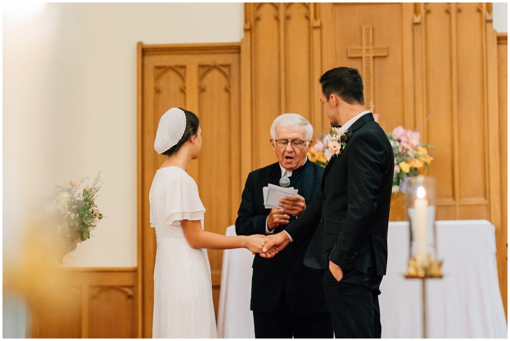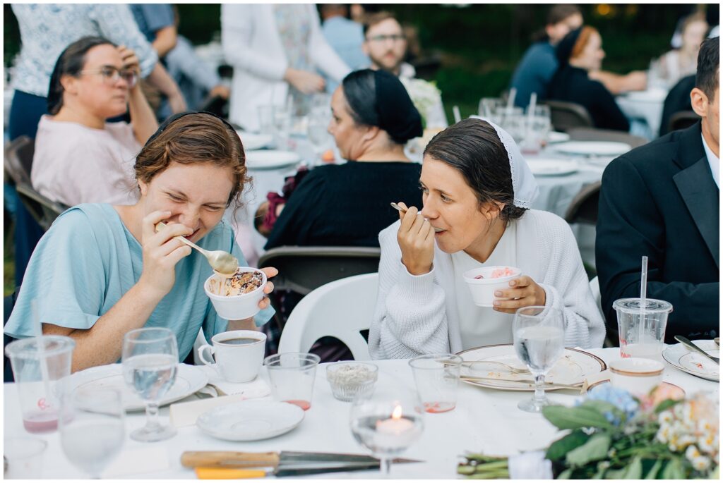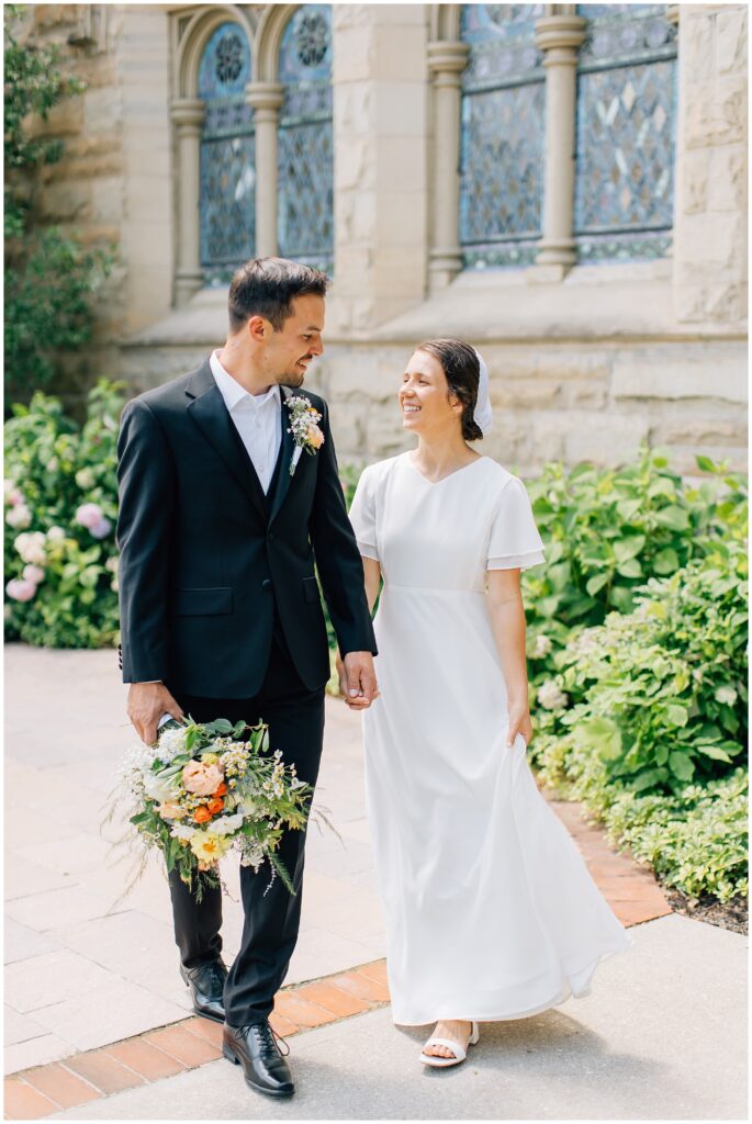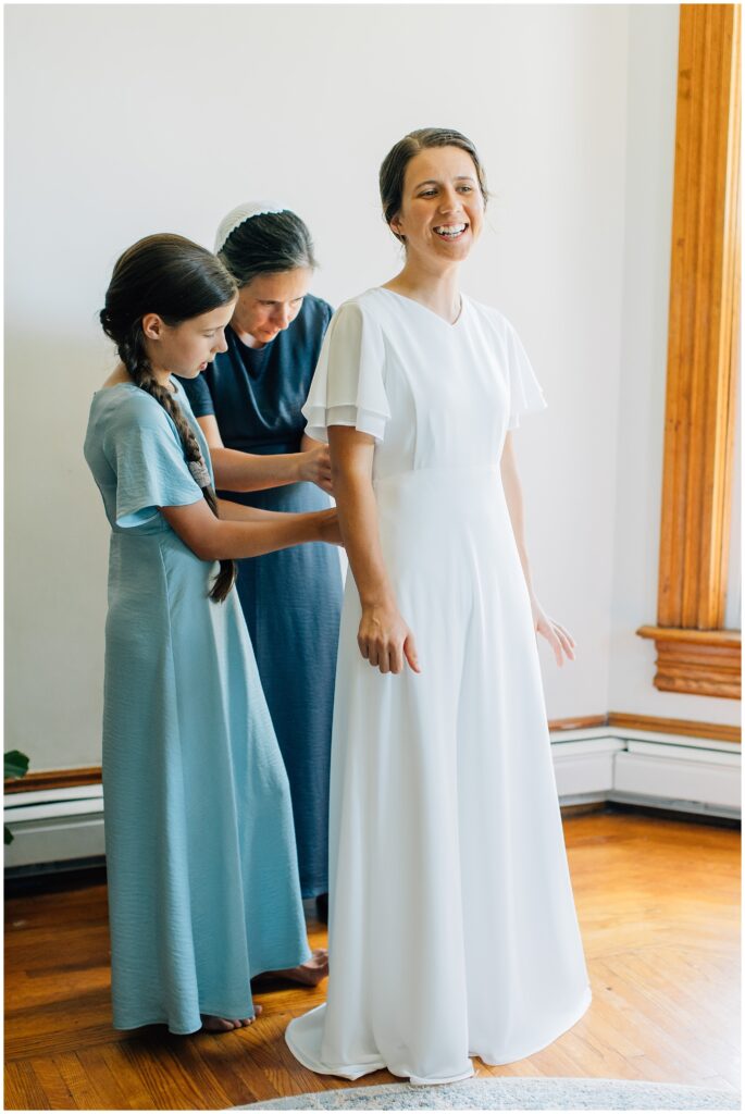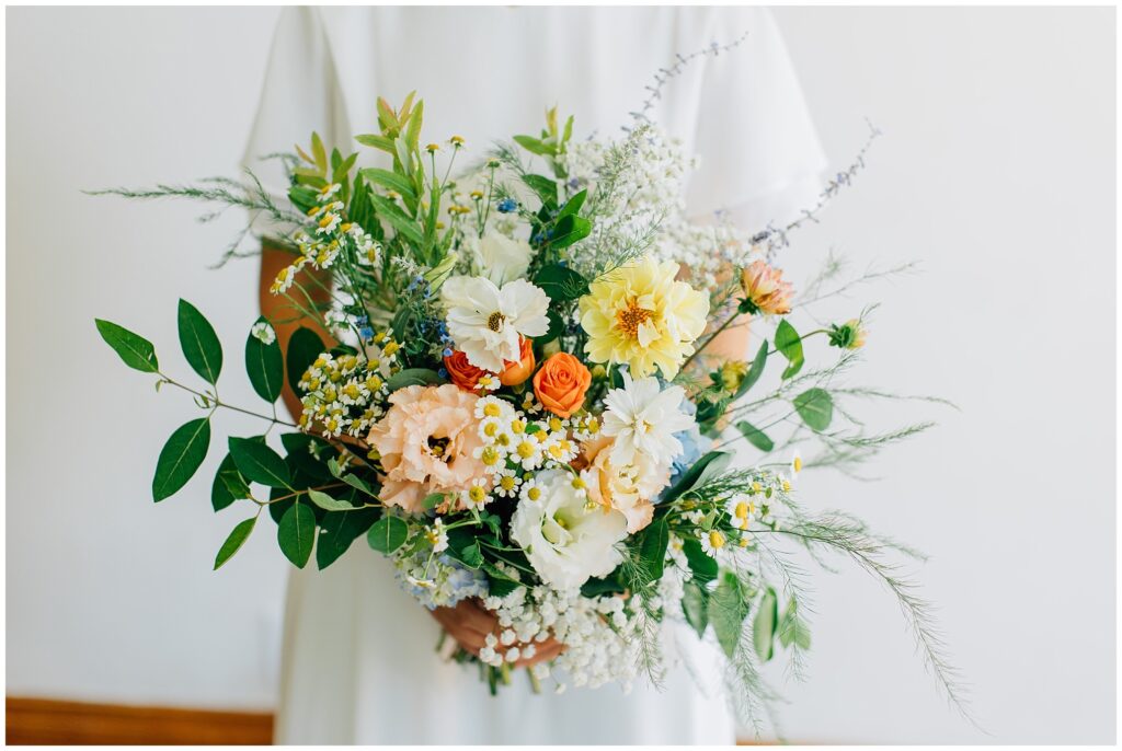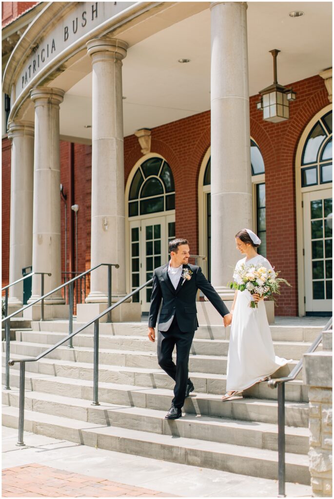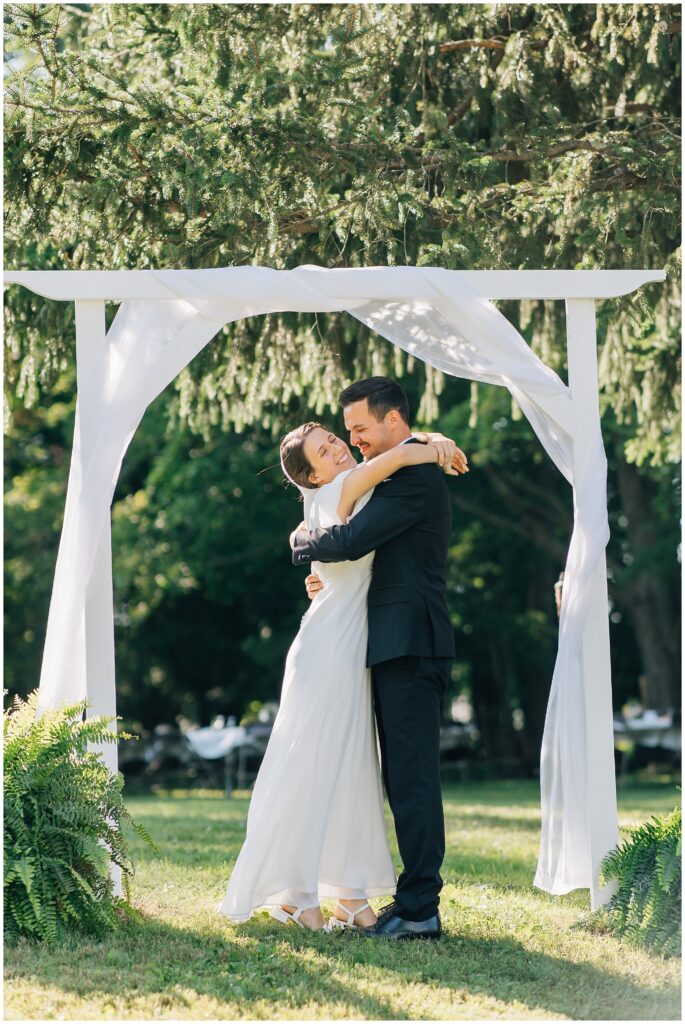 The bridal party had brunch together at the bride’s home and then she and her girls got ready for the day there. Harrison and Angeline shared a sweet first look in a clearing in the woods behind her house, then we went to the local college campus for the rest of the photos. They were so relaxed and happy and it was just a fun day all around!Â