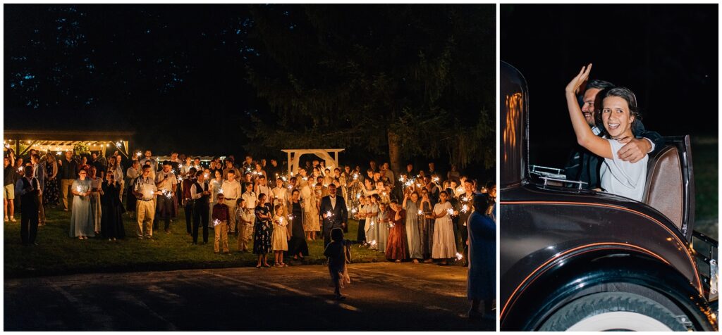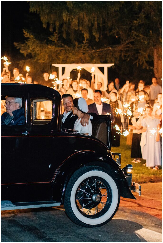 Favorite things: the blue & wildflower color combination, of course! And the soda bar welcoming guests at the reception.. and the getaway car! One of the best things about the getaway car was that after they asked the gentleman if they could use the car, they realized that he and the car had also escorted Harrison’s parents on their wedding day!Â